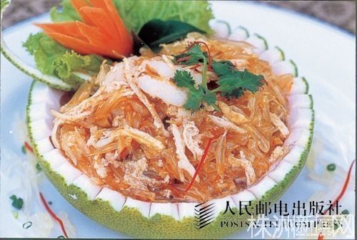 6.柚子沙拉(Yam-Som O):這道熱沙拉將清爽的柚子拌進(jìn)用椰奶、紅咖喱醬、辣椒油、糖混煮的醬料中,加進(jìn)蝦仁或雞絲,有些餐廳還會再加上烤過的椰絲或碎花生。